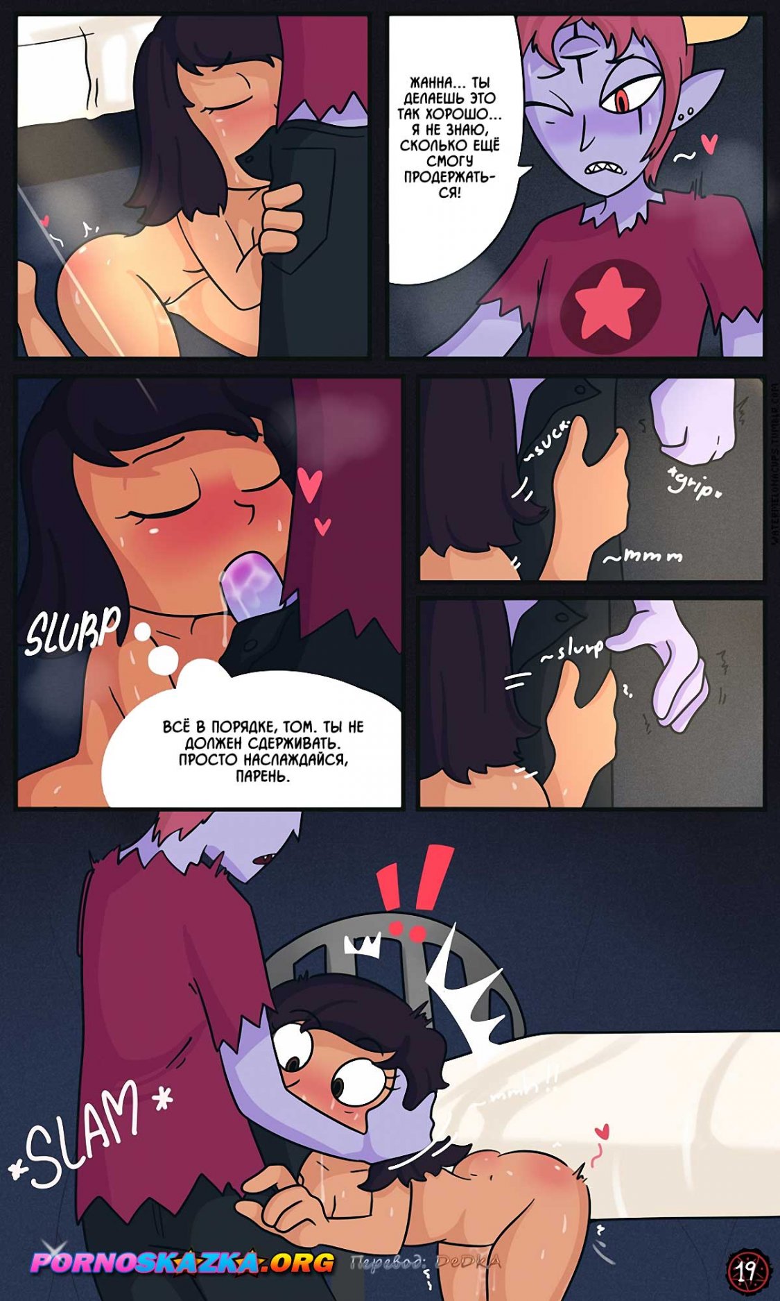 С большой радостью сообщаем, что сайт pornoskazka9.org разрешили опубликовать на нашем сайте их перевод этого отличного комикса. Просим поддержать данный сайт своей подпиской!!! Девушка прикоснулась к существу, чтобы хорошо с ним потрахаться. Он сначала начал вылизывать девушки письки, а потом они начали ебать друг друга. Ему явно было чем удивить ее.