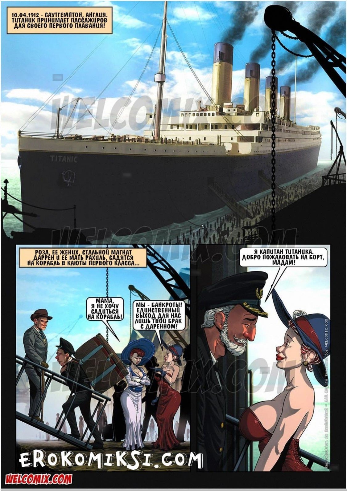 Титаник. В закладки 238 Откровенные интимные комиксы, история которых пойдет об альтернативной версии событий произошедших на самом известном лайнере «Титанике». Из данного Категории: --- Комментарии (0) Написать Прокомментировать Введите код с картинки: Отправить