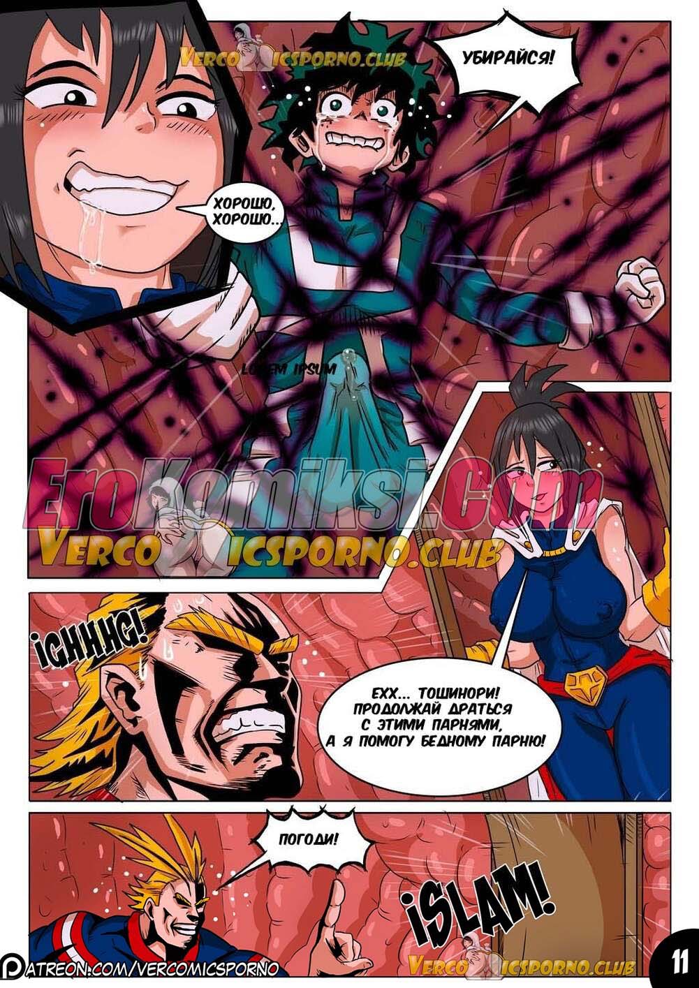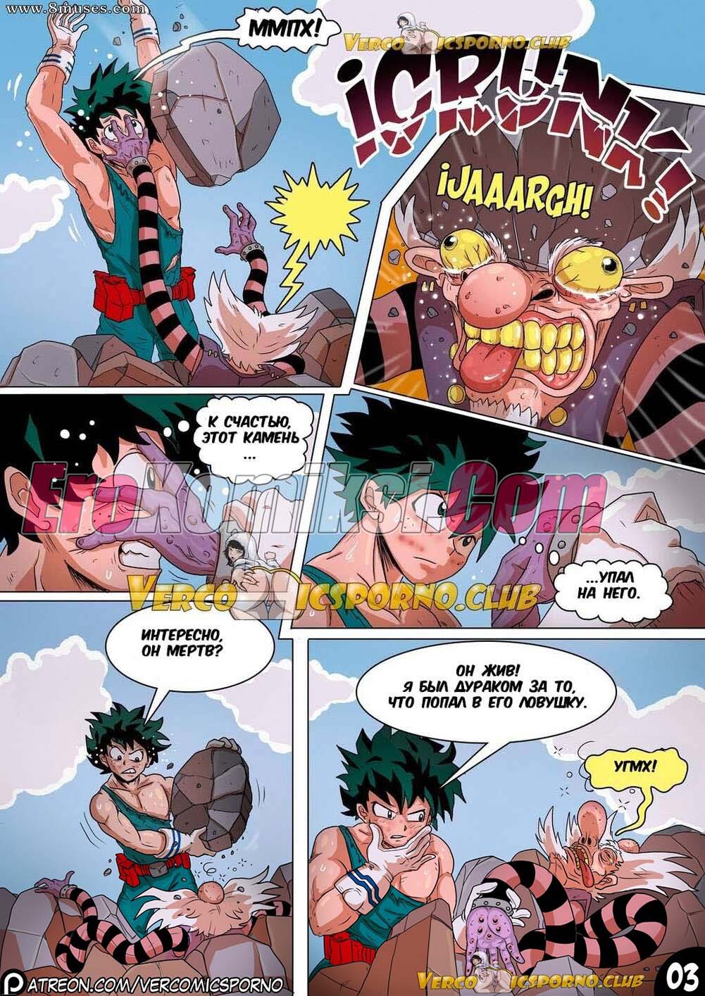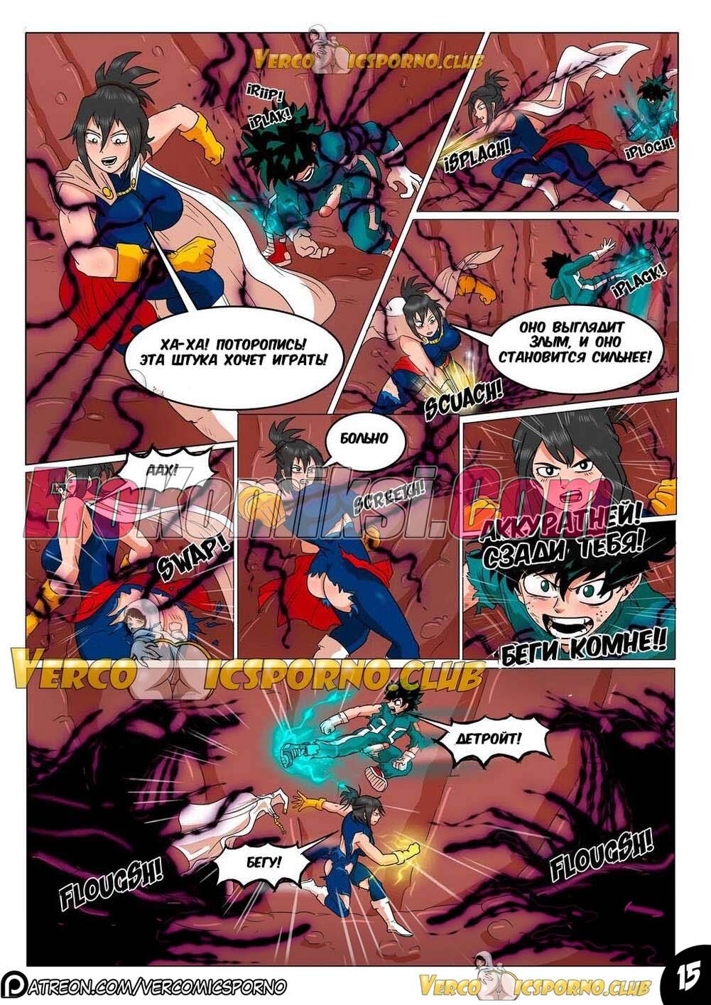 Порно комикс Академия Животный магнетизм. Наш супер герой приложил все свои усилия чтобы победить гадкого злодея. Данный подвиг слишком сильно возбудил его