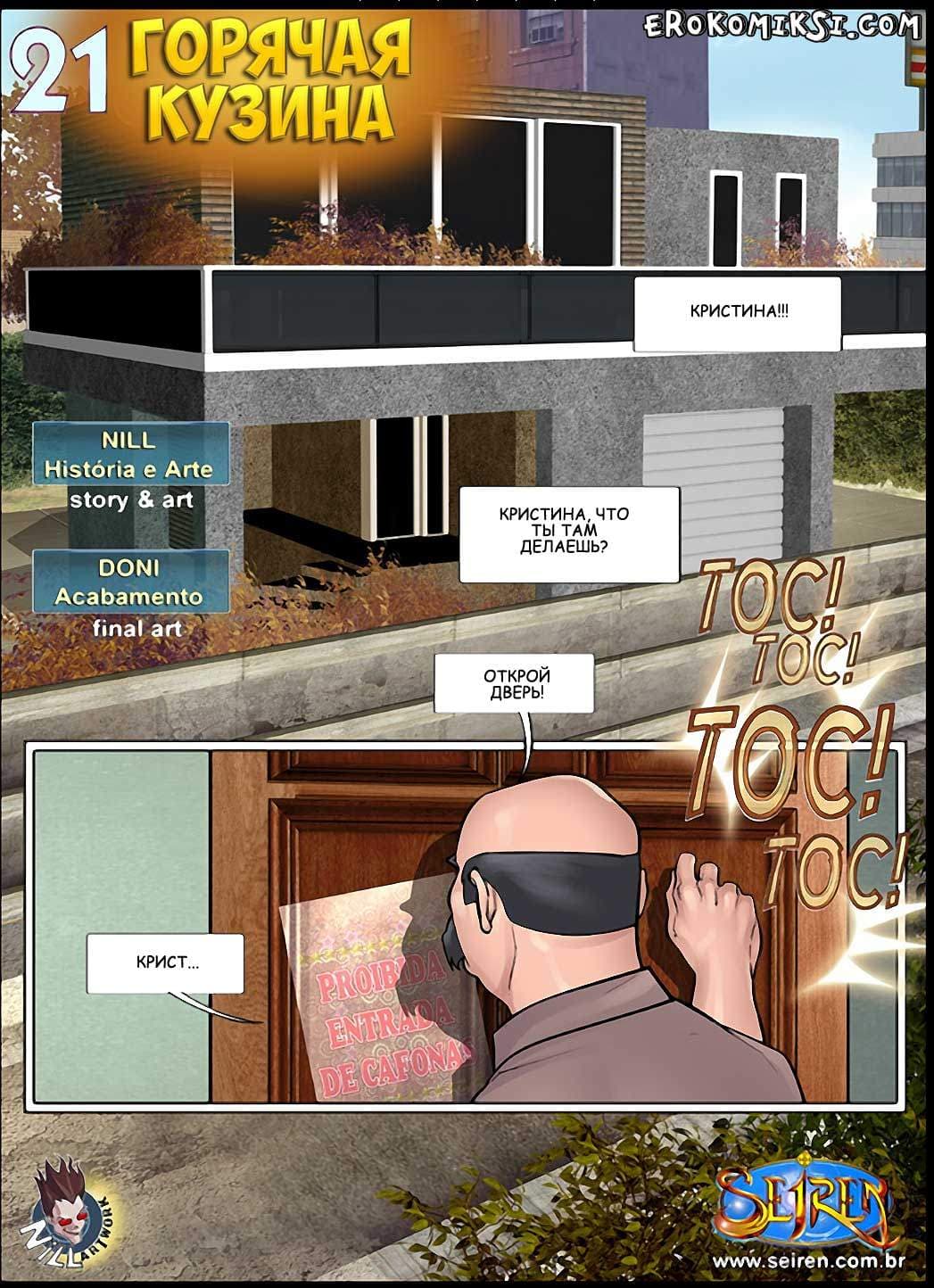 Популярный порно комикс Горячая кузина 21 начинается с того, что, вернувшись из поездки в деревню к дедушке, Луис решил заглянуть к Кристине. Он знал, что его ждёт крайне тёплый приём. Но, когда он пришёл к Кристине, то у неё уже
