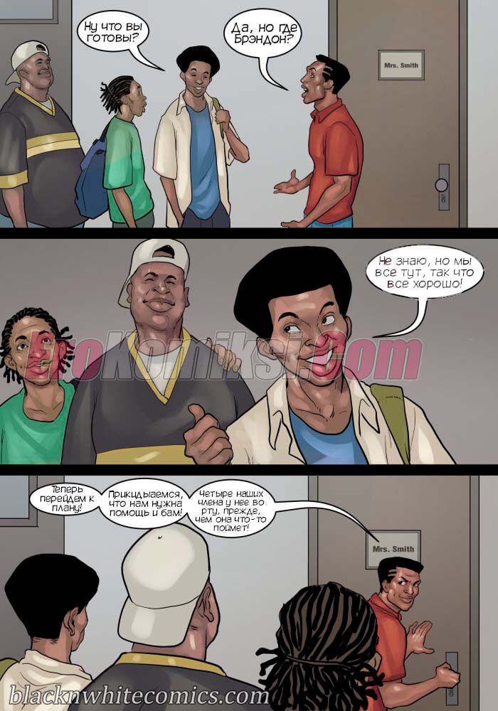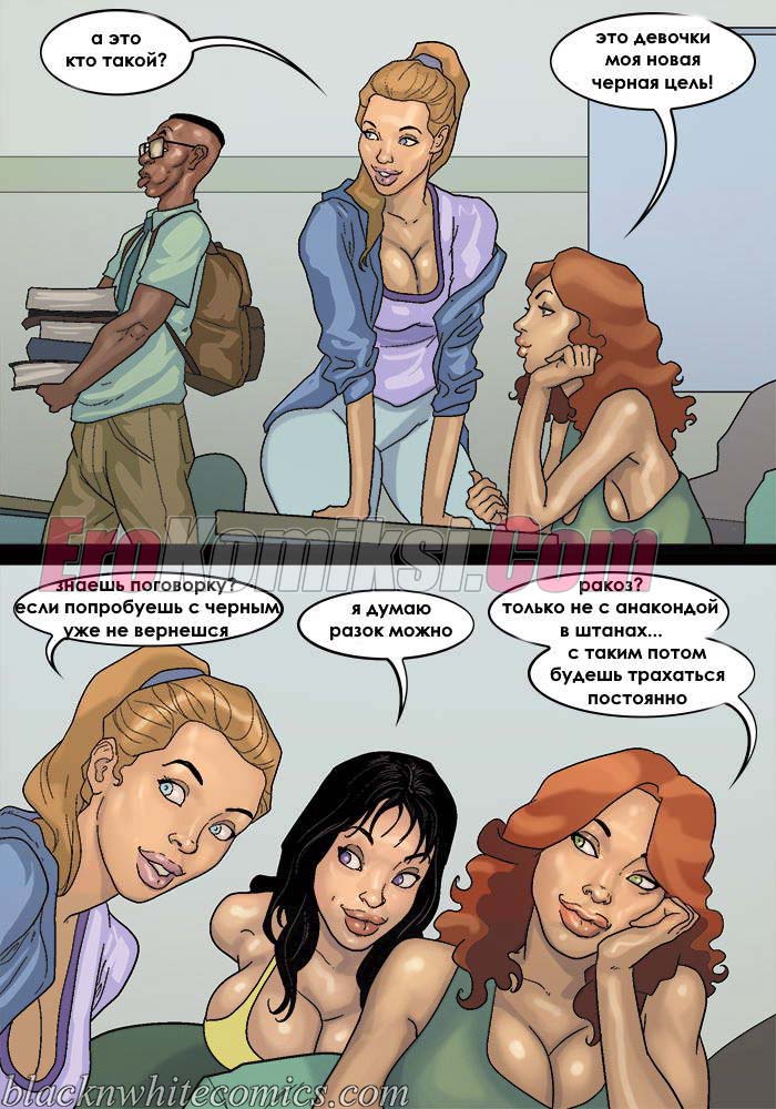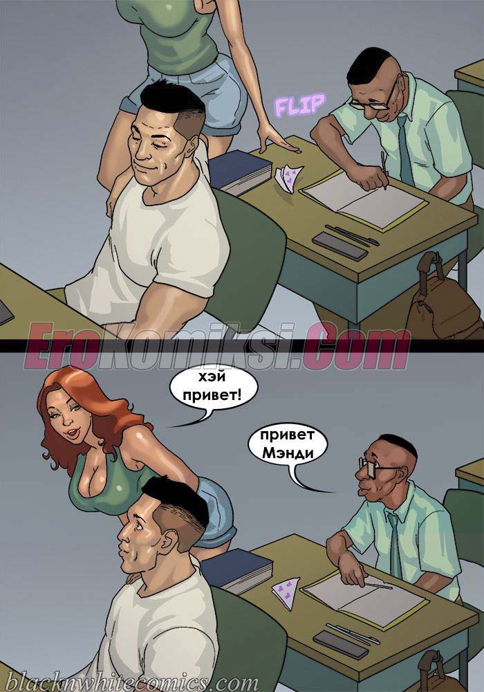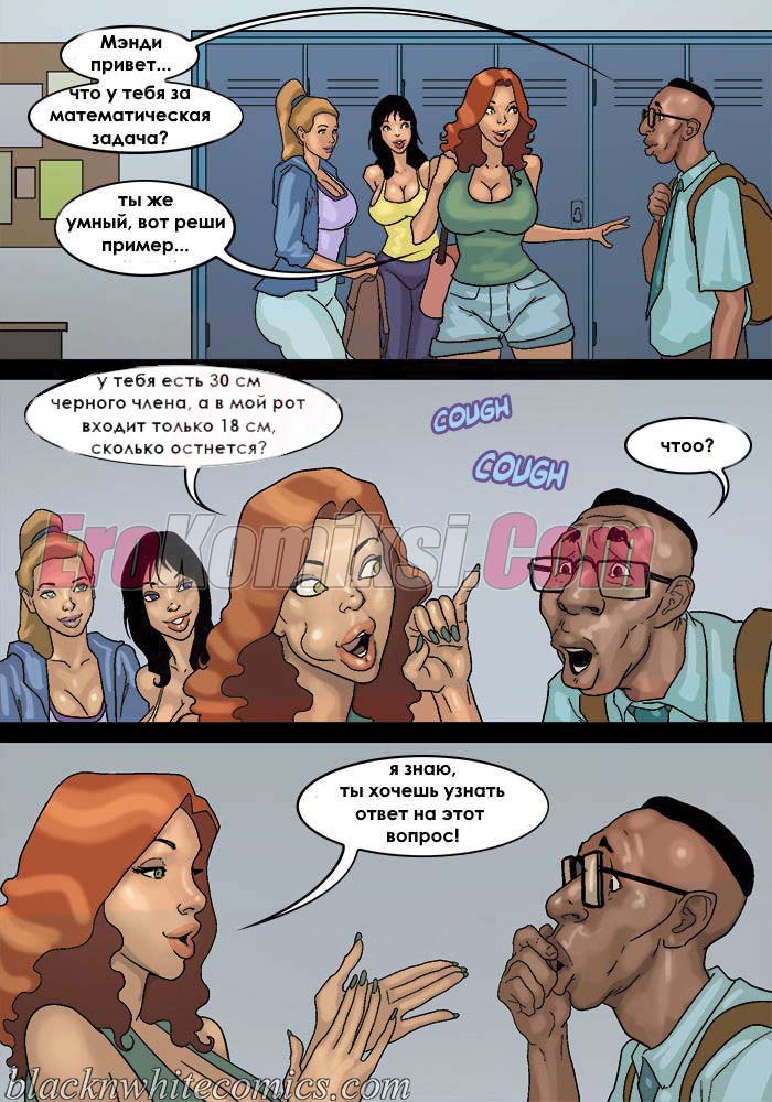 Порно комикс После уроков. Часть 3. Развратные девушки вновь донимают парня с большим хуем. Они вместе договариваются и сношаются в ним по очереди во время