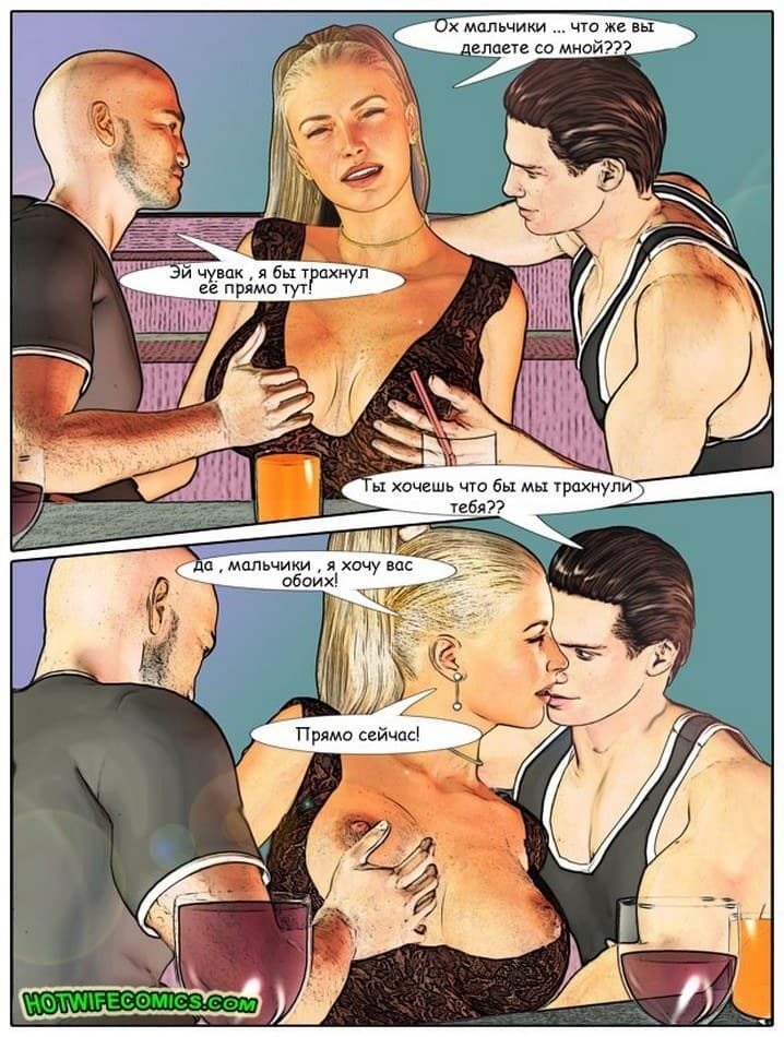 Эта секс история происходит в клубе, куда пришли отдыхать муж с женой. Там ей приглянулись двое хмырей, с которыми в последствии она изменила своему супругу.