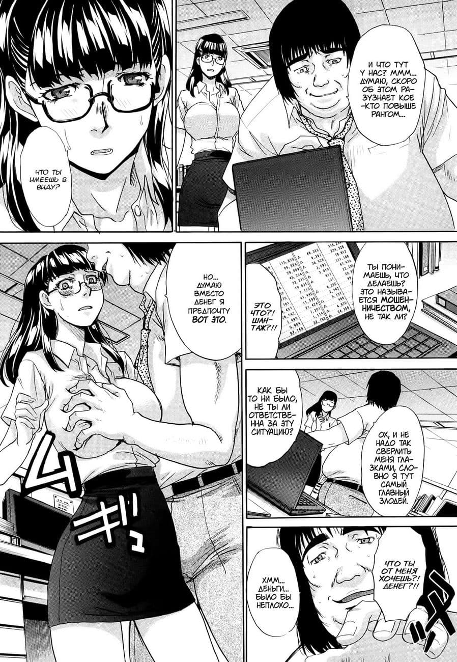 Японский порно комикс о том, как шантаж девушки привел к тому, что ее без обоюдного согласия жестко трахнули, насаживая на толстый член.