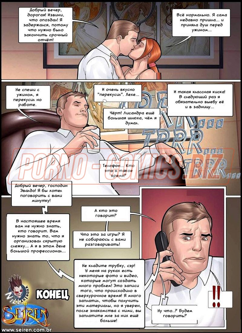 Рыжеволосая героиня заключительной части порно комикса "Спортсменка" сразу после занятия решает отправиться в душ, чтобы освежиться перед походом домой. Однако, когда на нее прямо в зале набрасывается какой-то незнакомец, признавшись ей в своих чувствах, она получает упругий член в киску. После секса с развратником, Лисандра все-таки отправляется в душ и, не зная, что ее муж пришел на тренировку, чтобы ее встретить, ебется с незнакомым красавчиком еще и в душе.
