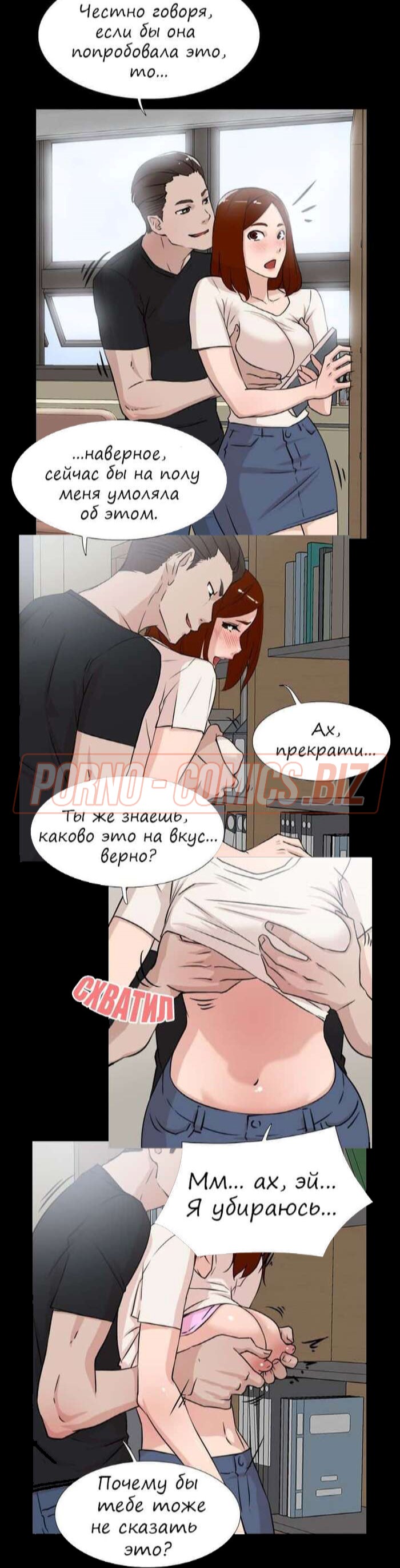 Секретарша комикса «Её 4 размер. Часть 18» довыделывалась на работе что ее изнасиловали в кабинете