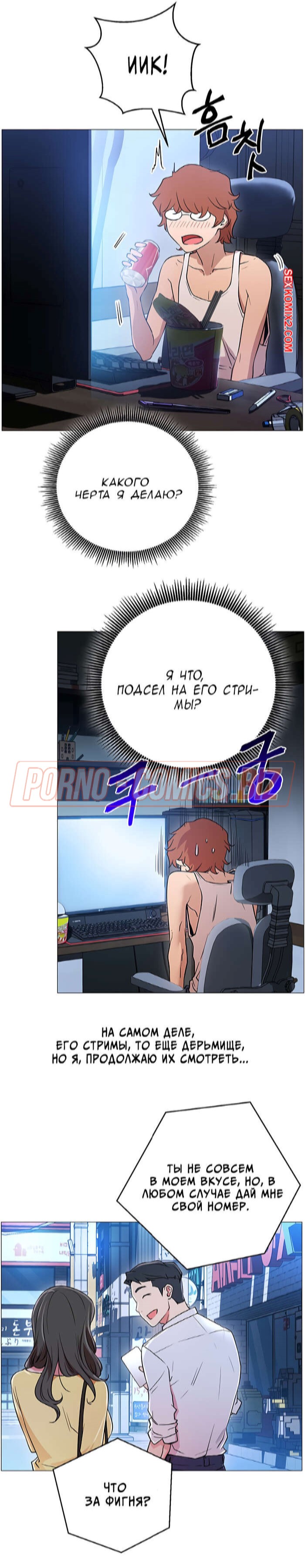 В первой главе возбуждающего порно комикса "В прямом эфире. Ты хочешь на стрим." молоденькая лоли, повернувшись в сторону, чтобы взять на руки своего кота, случайно засветила подписчикам красивую попку. Когда кот стал ее царапать, девушка умудрилась засветить еще и большие сисечки. Если бы она не была такой скромняшной, то смело бы показалась голенькой на стриме для своих фанатов.