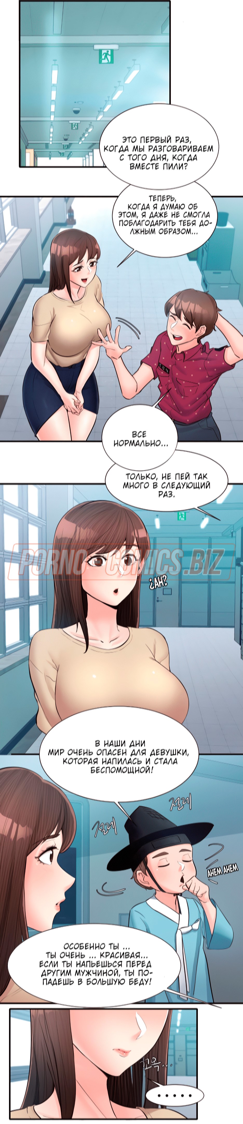 Пышногрудая и очень сексуальная училка из 15 главы комикса "Общественные интересы" так влюбилась в одного парня, что ни дня не может о нем не думать. Однако, сегодня развратник решил пропасть, из-за чего учительница чувствует себя одиноко. Оказавшись в лифте вместе с охранником, училка решает пригласить его к себе домой. Пока она решалась на такой смелый шаг, молодого охранника увела молоденькая телочка.